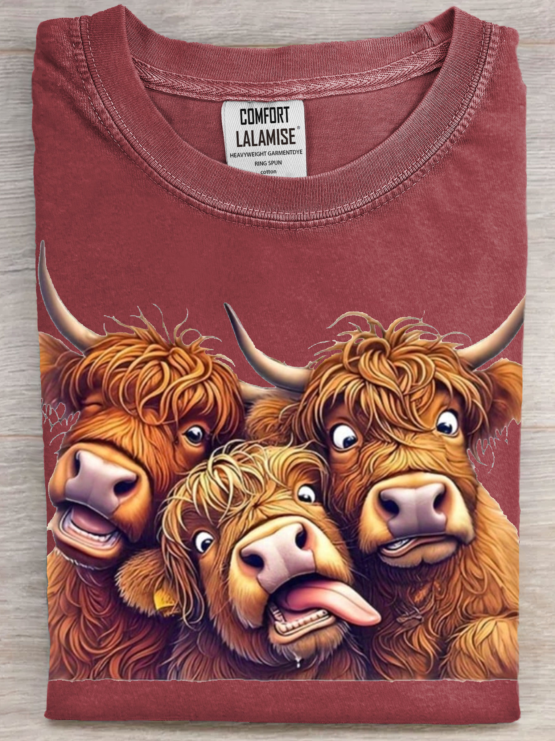 Bestie Cute Highland Cattle Art Print Casual Short Sleeve T-shirt