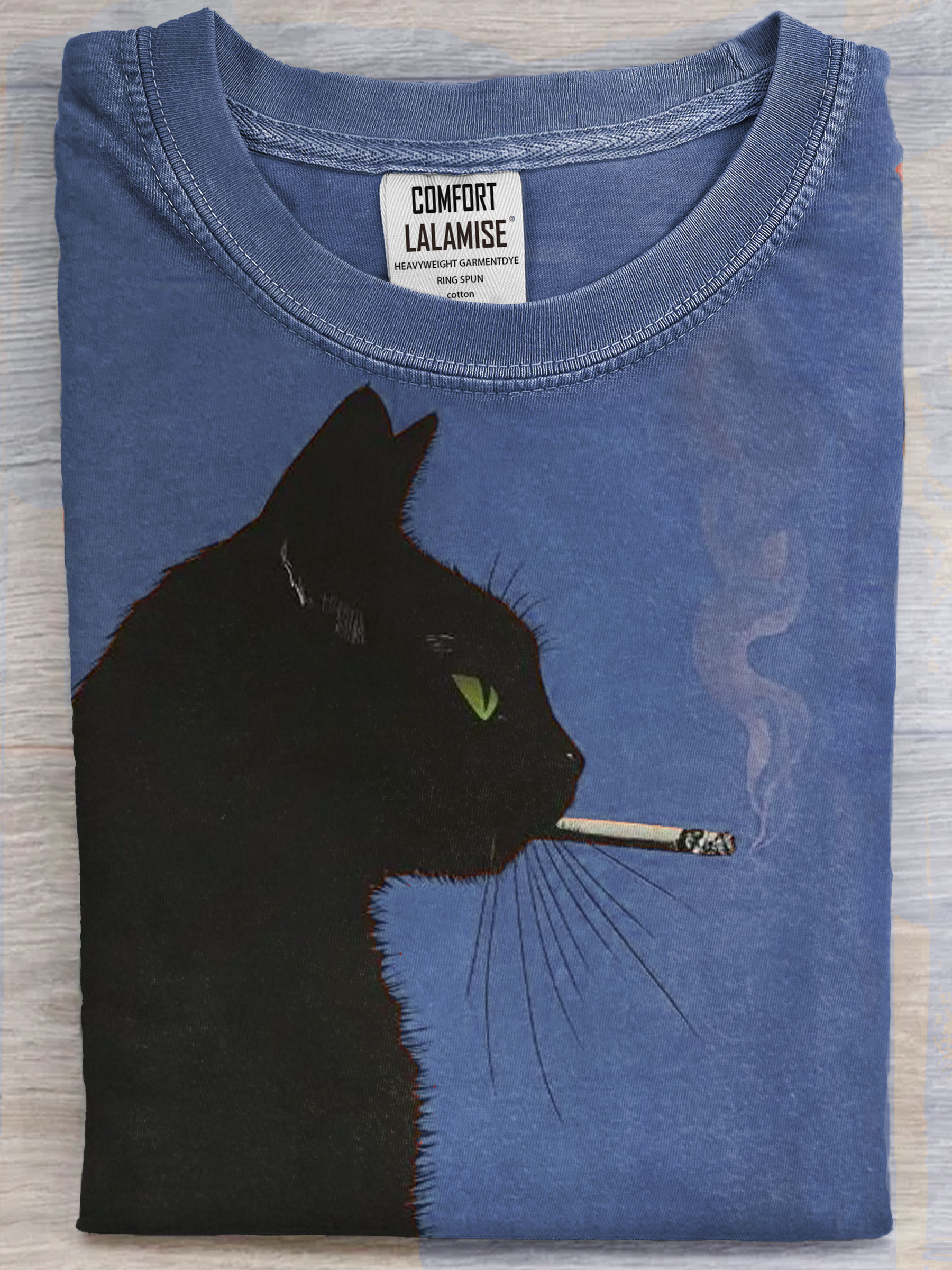 Black Cat Smoking a Cigarette Vintage Art Print Casual Short Sleeve T-shirt