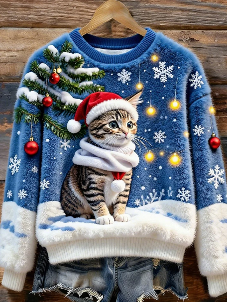 Christmas Cute Cat Art Casual Cotton Sweatshirt