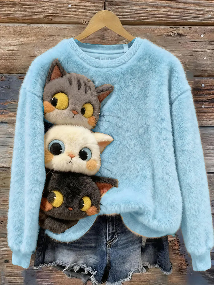 Funny Cute Cat Art Casual Cotton Plush Sweatshirt