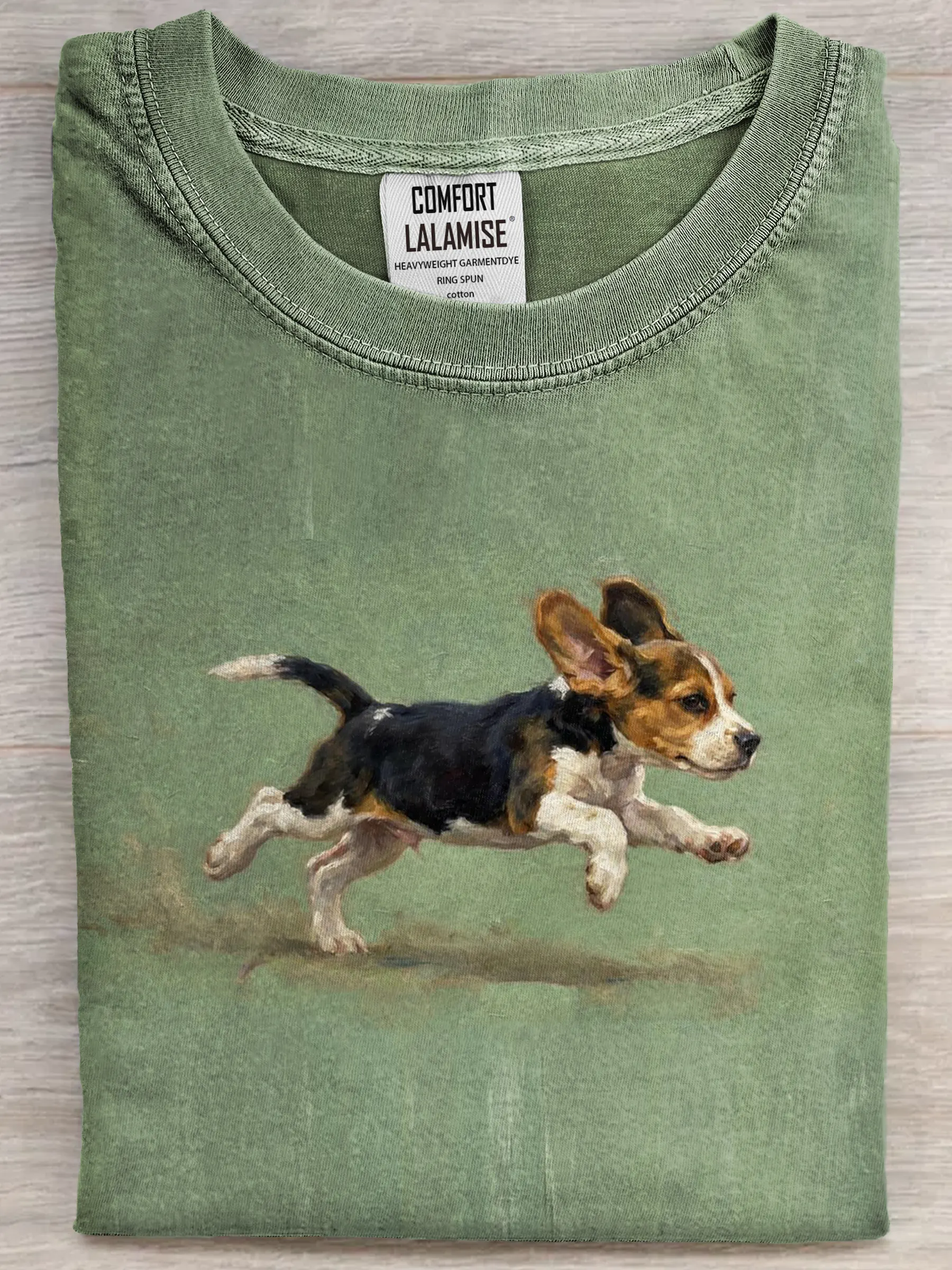 Funny Cute Running Beagle Puppy Art Print Casual Cotton Short Sleeve T-shirt