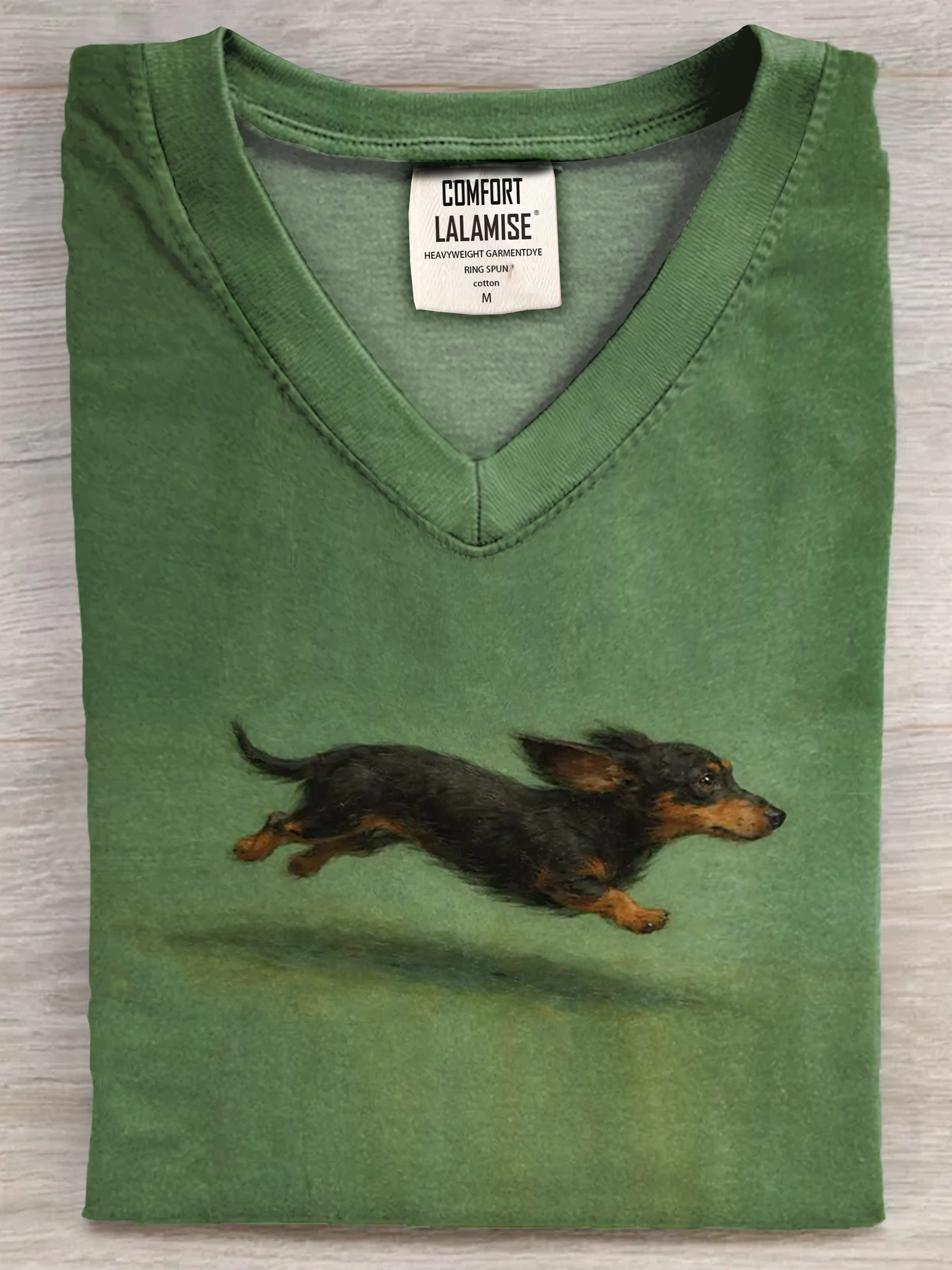 Funny Cute Running Dachshund Art Print V-neck Casual T-shirt