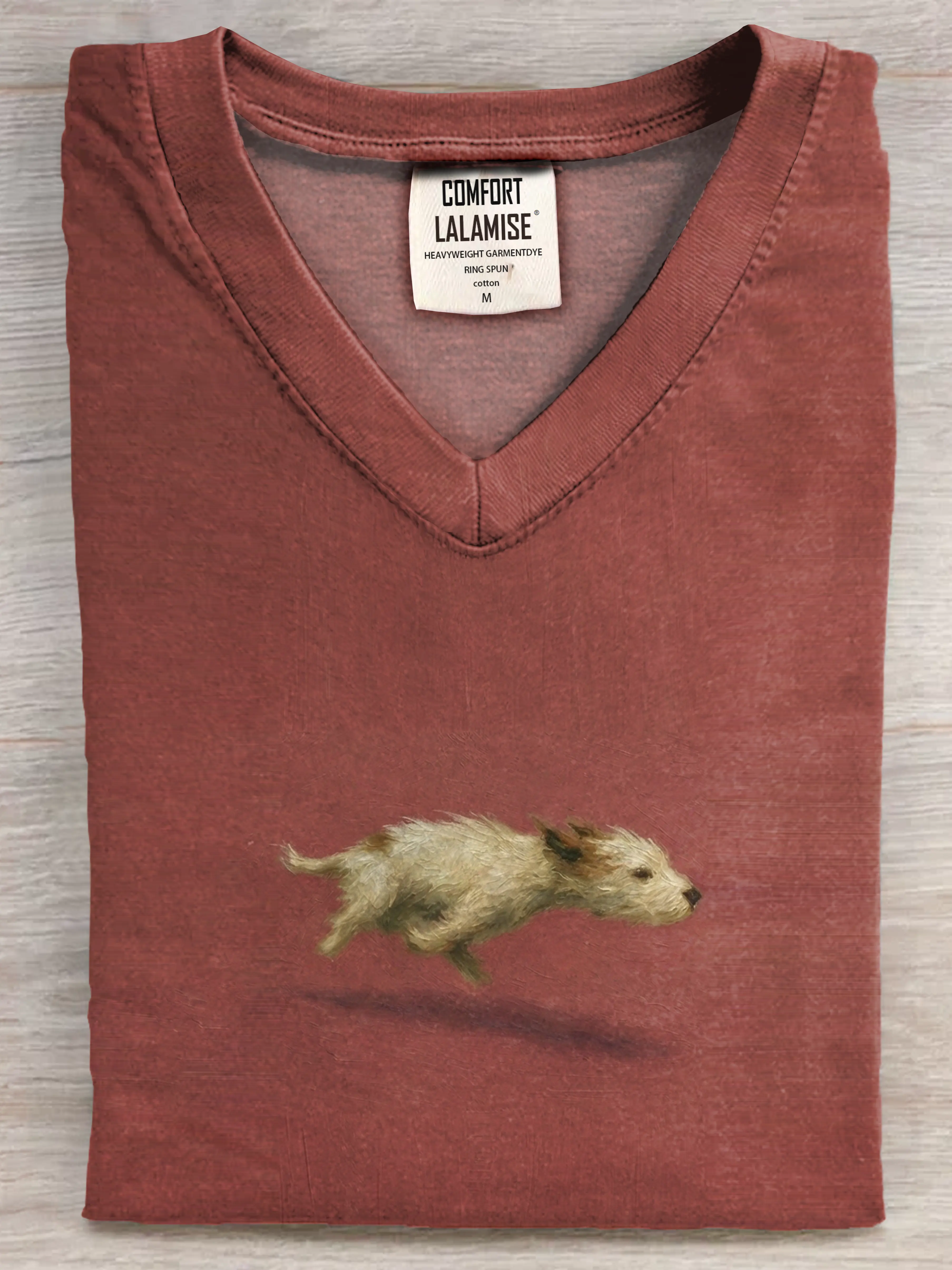 Funny Cute Running Dog Art Print V-neck Casual T-shirt