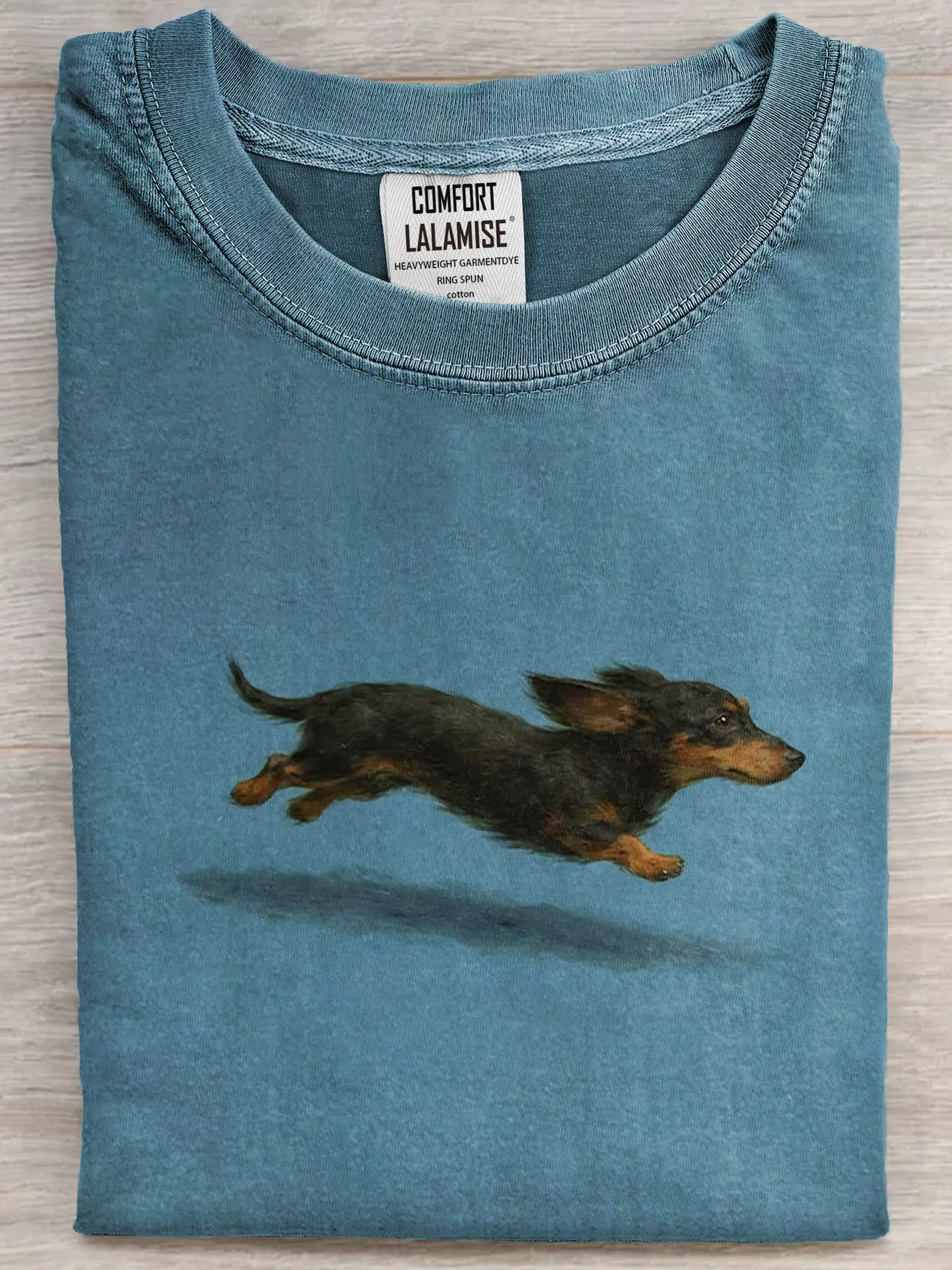 Funny Retro Cute Running Dog Art Print Casual Cotton Short Sleeve T-shirt