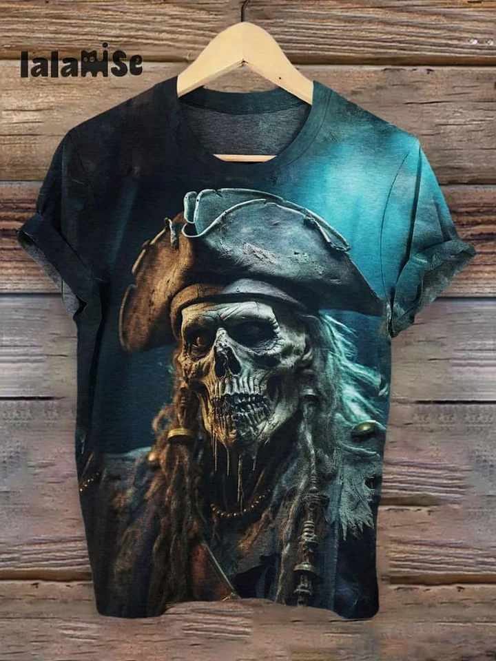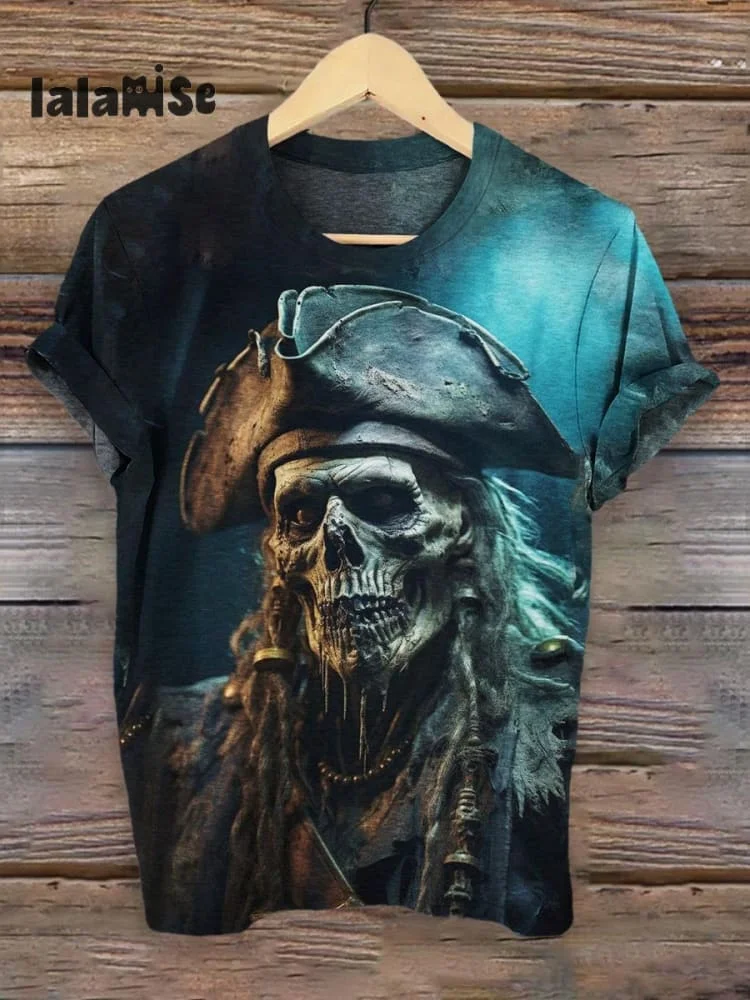 Punk Pirate Grim Reaper Gothic Art Pattern Print T-shirt