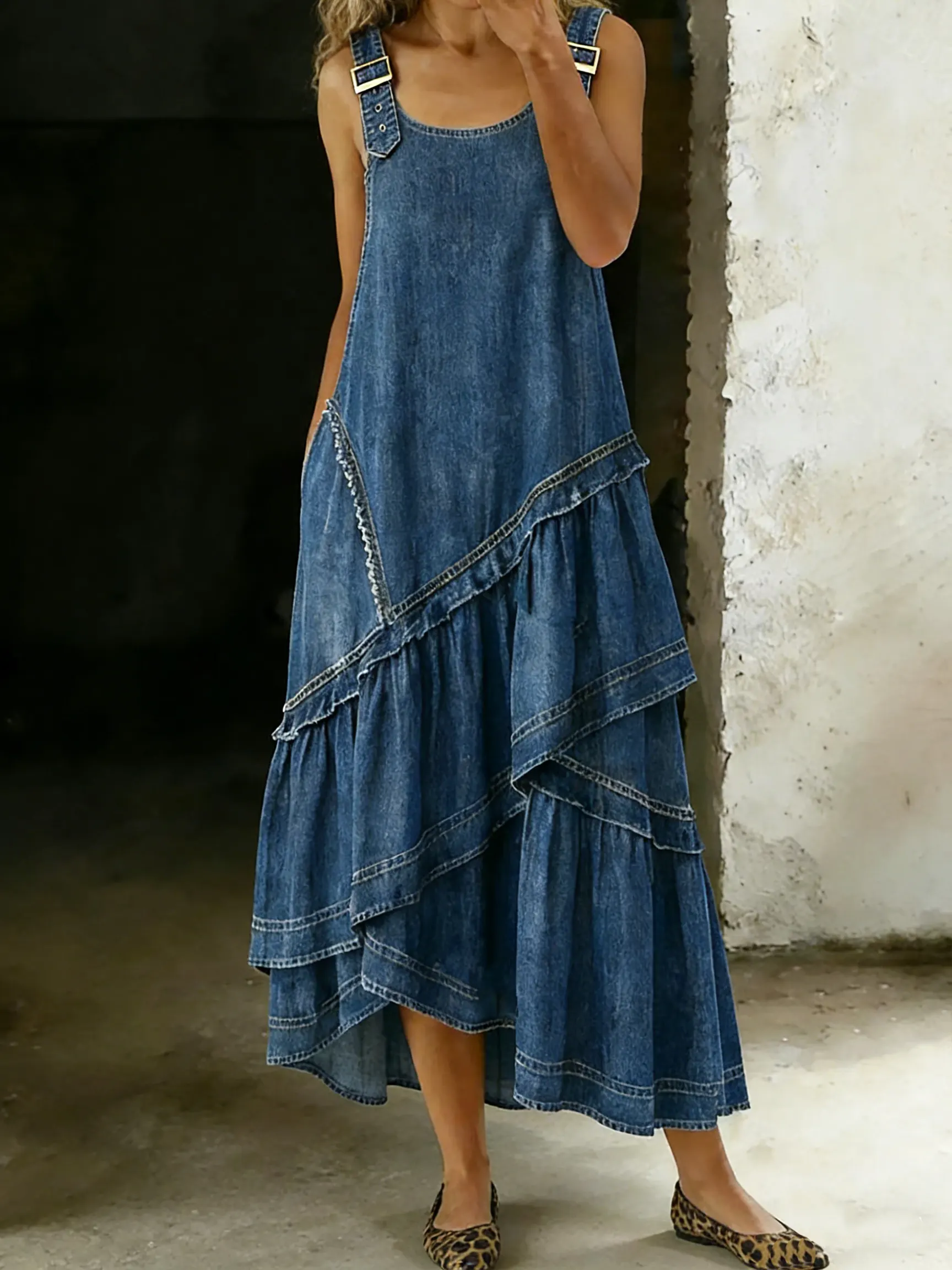 Women's Fashion Design Sleeveless Multi-layered Ruffled Strap Dress