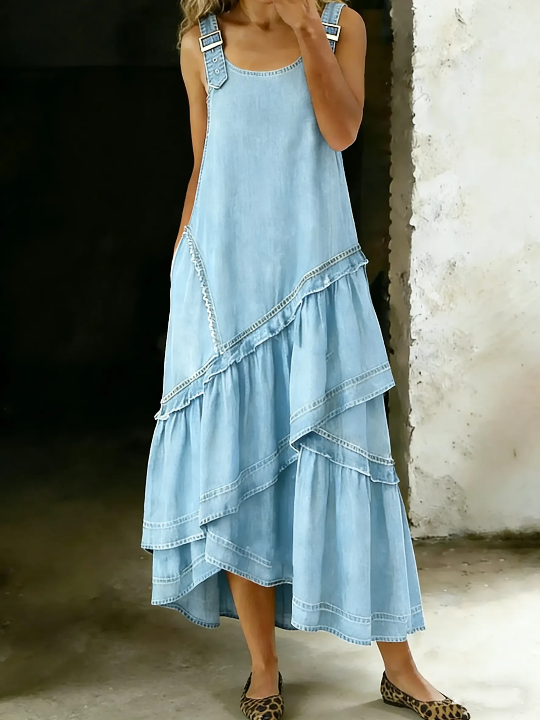 Women's Fashion Design Sleeveless Multi-layered Ruffled Strap Dress
